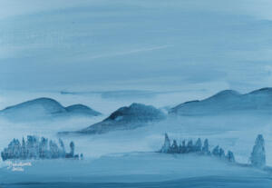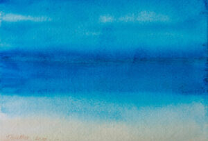 Another painting from hotel quarantine – just playing with colour and trying to make clouds. It’s actually painted on a postcard. You can buy small