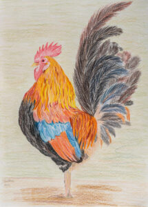 So I had a lot of fun painting this rooster, and I really like how the tail feathers have worked out. The original isn’t for